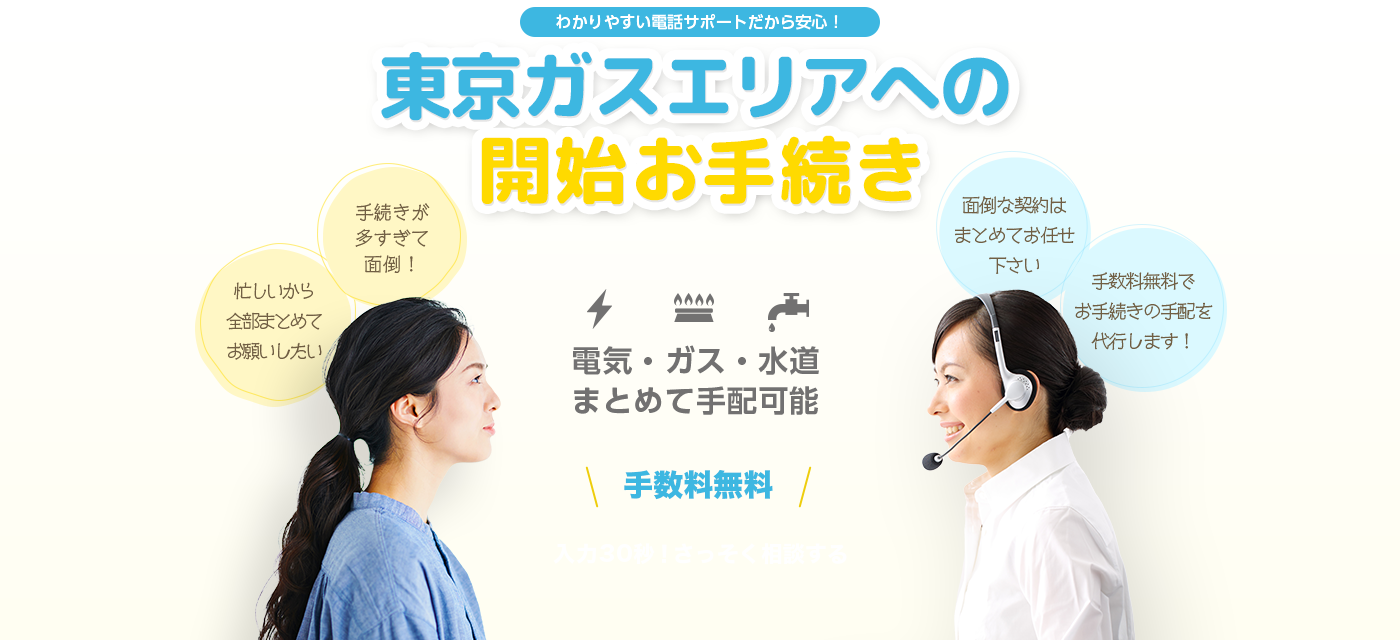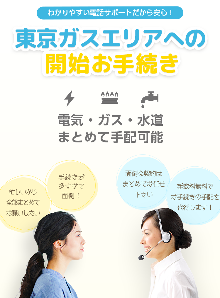 • 移転手続きができるのは水道・電気・ガスだけですが、引越し先の新規契約は
